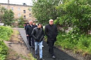 Глава ЗАТО г. Североморск Владимир Евменьков провел еженедельный объезд города. Рейд начался в районе ул. Кирова, 8. Здесь появилась заасфальтированная пешеходная дорожка к трапу, ведущему в нижнюю часть города. Участок пользовался большим спросом среди жителей улиц Кирова и Морская, однако полноценной пешеходной дорожкой «народную тропу» назвать было сложно. Благодаря программе «Формирование комфортной городской среды» здесь удалось начать работы. На сегодняшний день заасфальтированная площадь составляет 230 кв.м., по пути следования предусмотрен «карман» для двух лавочек и урн, в планах – модернизация освещения. Сами светильники останутся прежними. В 2017 году они были заменены в рамках энергосервисного контракта и соответствуют современным нормам и ГОСТам. А вот опоры будут новые.