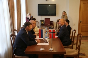 Сегодняшний визит начался с официальной встречи главы ЗАТО г.Североморск Владимира Евменькова и мэра коммуны Сер-Варангер Рюне Рафаэльсена. Сразу после встречи с главой ЗАТО норвежская делегация отправилась на праздничные мероприятия, посвященные Дню Военно-морского флота.