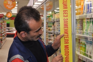 15 августа руководитель председатель Совета депутатов ЗАТО г. Североморск Евгений Алексеев вместе с заместителем Татьяной Сахаровой, депутатами Андреем Орловым, Андреем Третьяком и начальником отдела экономического развития администрации флотской столицы Натальей Микляевой проверили в магазине торговой сети «Евророс», как выполняются требования о том, чтобы на ценниках молочной продукции была указана информация, что молочные жиры заменены растительными. Эти продукты должны быть расставлены по разным полках с указателями, чтобы покупатели знали, какие продукты они покупают.