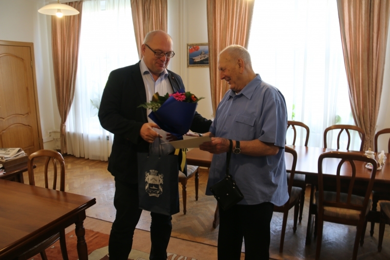С Днём рождения Почетного гражданина флотской столицы, военного строителя Павла Сергеевича Жидяева поздравил глава ЗАТО г.Североморск Владимир Евменьков. Павел Сергеевич стал первым в Североморске, кто был награждён памятным нагрудным знаком "Русское Заполярье".