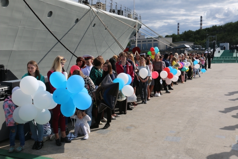 В торжественной церемонии приняли участие командующий Северным флотом вице-адмирал Александр Моисеев, Глава ЗАТО г. Североморск Владимир Евменьков, личный состав соединений надводных кораблей, базирующихся в Североморске, родные и близкие моряков.
