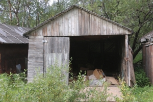 Первая остановка — в самом начале поселка: заброшенные полуразрушенные гаражи, освещение и грунтовая дорога. Демонтаж бесхозных построек и установка световых опор уже в планах на этот год.