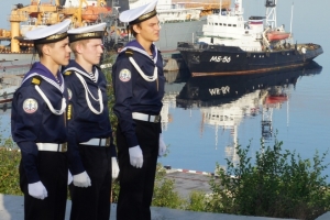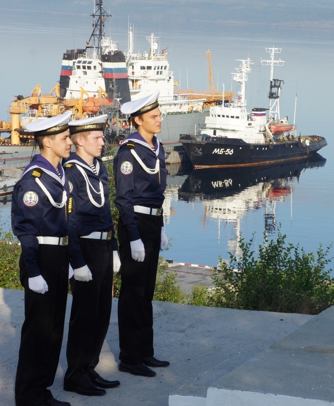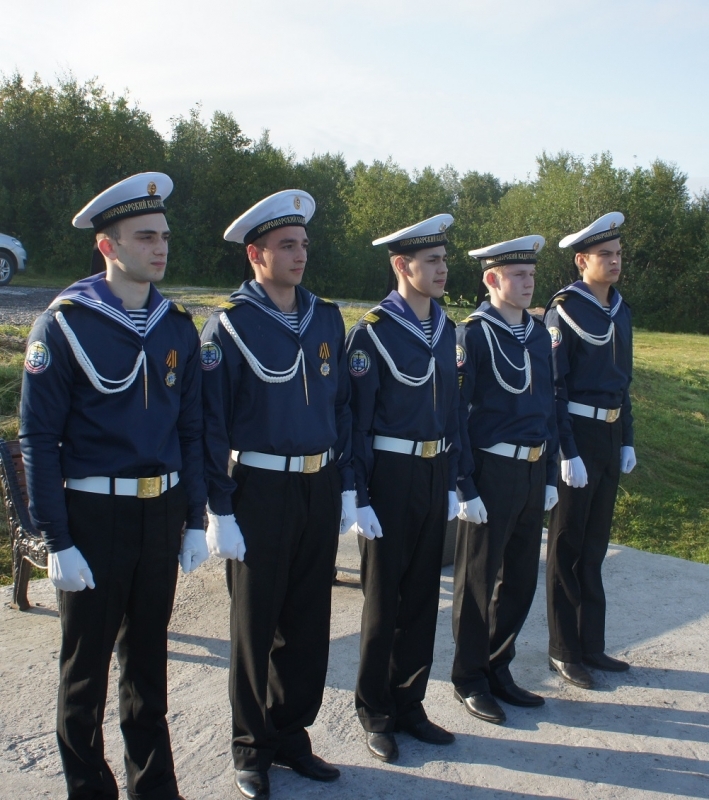 Ровно в 8.00. кадеты Североморского кадетского корпуса отпустили края полотнища флага и он поднялся на флагштоке. Одновременно на кораблях и судах Северного флота были подняты Андреевские флаги.