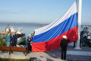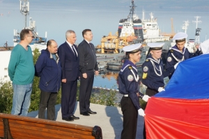 Выступая на церемонии председатель Совета депутатов Евгений Алексеев отметил символичность того, что Государственный флаг поднимается на флагштоке, расположенном на сопке, на виду боевых кораблей Северного флота. Ведь впервые государственный флаг России в его нынешнем виде был поднят именно на корабле «Орел».