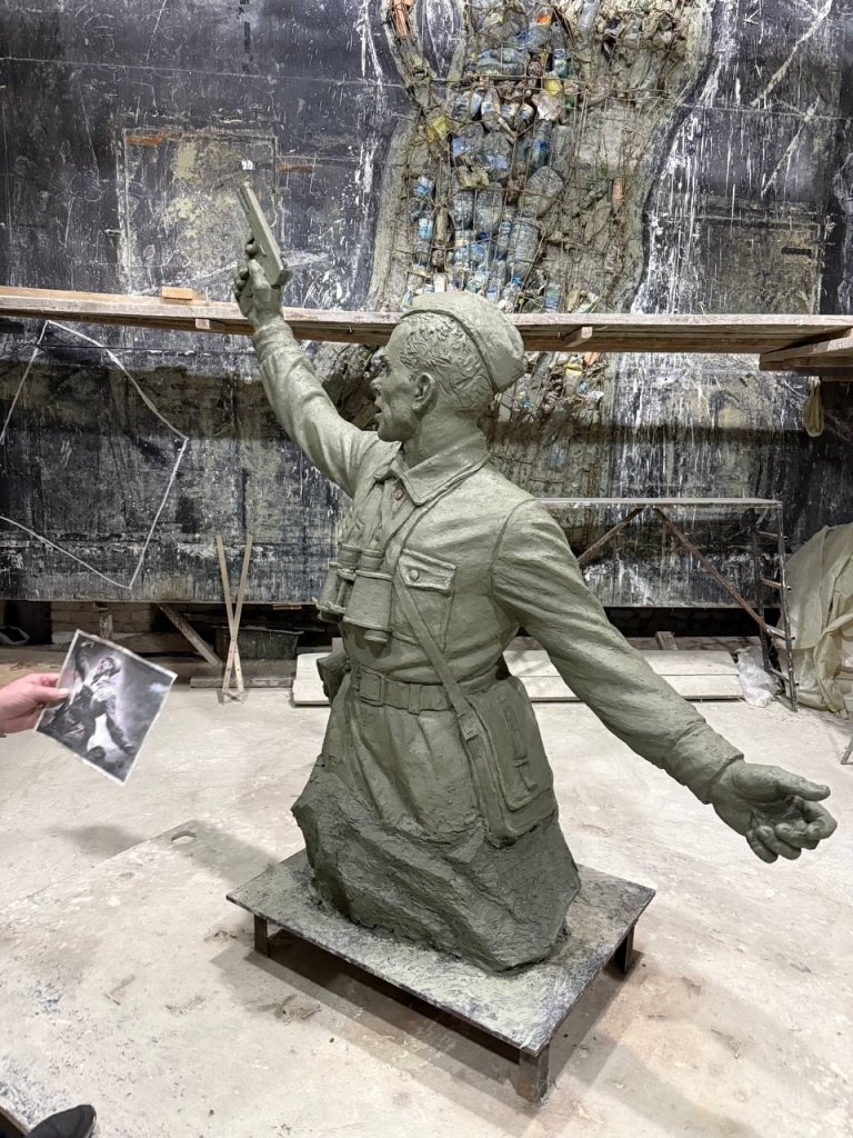 Пройден еще один этап — скульптор Александр Арсентьев создал из глины фигуры воинов.
