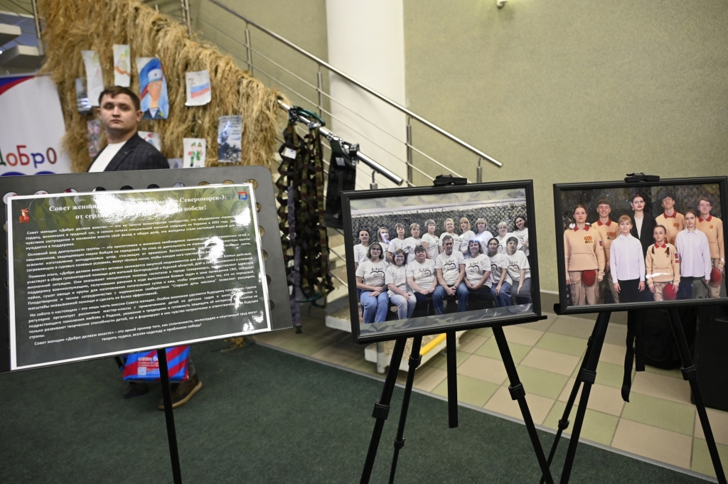 Интерактивная выставка «Силы тыла в лицах» - проект Общественной палаты Мурманской области. Он призван рассказать о людях, которые отдают свое время и силы, помогая тем, кто защищает интересы нашей страны в зоне проведения СВО. Выставка уже прошла в Полярном, Снежногорске, Гаджиево, Кировске, Ковдоре, Мурманске. На фотографиях североморской выставки - волонтеры нашего ЗАТО.