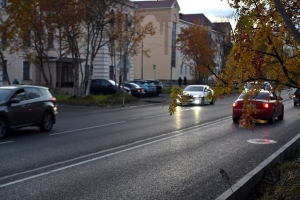 На проезжей части нанесена новая дорожная разметка для разгрузки утренних и обеденных заторов при движении от ДК «Строитель» в сторону Северной Заставы, движение организовано в три полосы.
